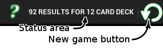 To start a new game, click the "New Game Button." When you click your first card, the "Status Area" will update showing score, elapsed time and number of tries.